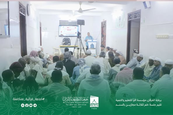 برعاية الفرقان،مؤسسة اقرأ للتعليم والتنمية تقيم جلسة ختم لثلاثة مجازين بالسند - 28-08-2025